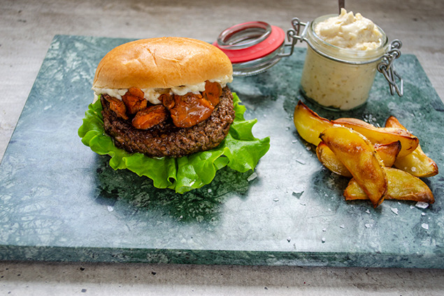 Älghamburgare med västerbottenmajonnäs och kantareller
