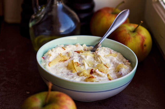 Går kanon att förbereda några timmar eller dagen innan servering! Du kan då tillsätta några äppeltärningar eller nytt äppelriv för extra snygg presentation.