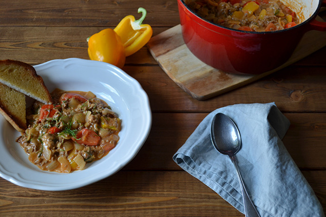 Smaka av med lite extra salt och späd grytan efter smak med extra vatten. Servera som den är eller med en bit bröd.