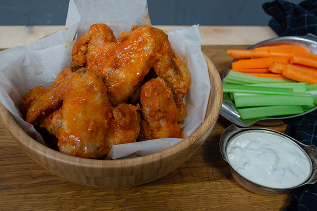 - Skär grönsakerna i stavar och servera dessa tillsammans med dippsåsen och kycklingvingarna.