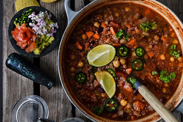 Chili med bönor och kikärtor