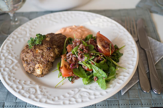 Fetaostbiffar med rissallad och ajvaryoghurt
