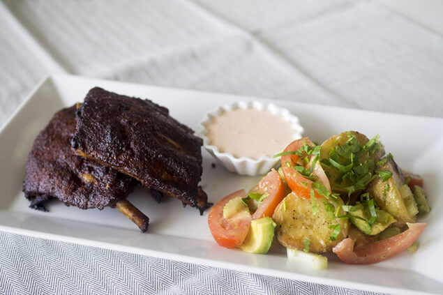 - Dags för glazen. Rör ihop soja, kanel, riven ingefära, tomatpuré, sambal oelek, honung, olja, pressad vitlök och pressad lime. Krydda med svartpeppar.
