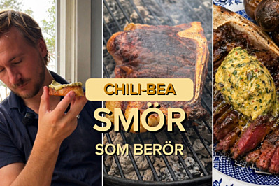 - Grilla i cirka 10–15 minuter och vänd regelbundet tills de fått fin färg med sotade fläckar.