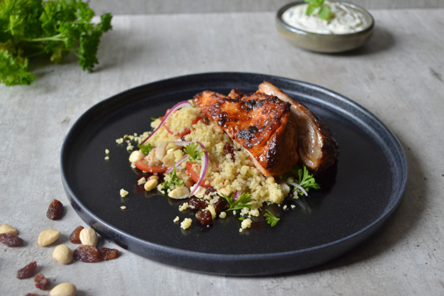 - Blanda ingredienserna till harissamarinaden och blanda ihop med kycklingen. Lägg i kylen i minst 30 minuter, gärna över natten.