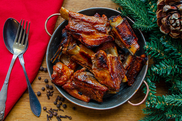 - Ta ut ur ugnen och låt svalna innan du skär upp i bitar längs benens riktning.