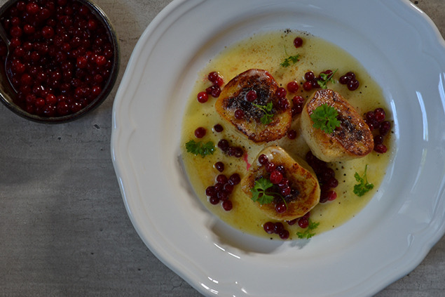 Kroppkakor med rårörda lingon