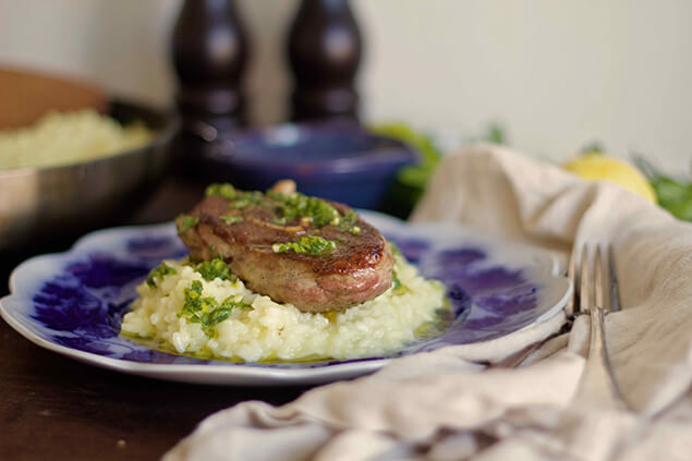 - Låt köttet vila ett par minuter på en tallrik innan servering. Du kan med fördel hälla ner köttsaften från tallriken ner i risotton för en mustigare smak.