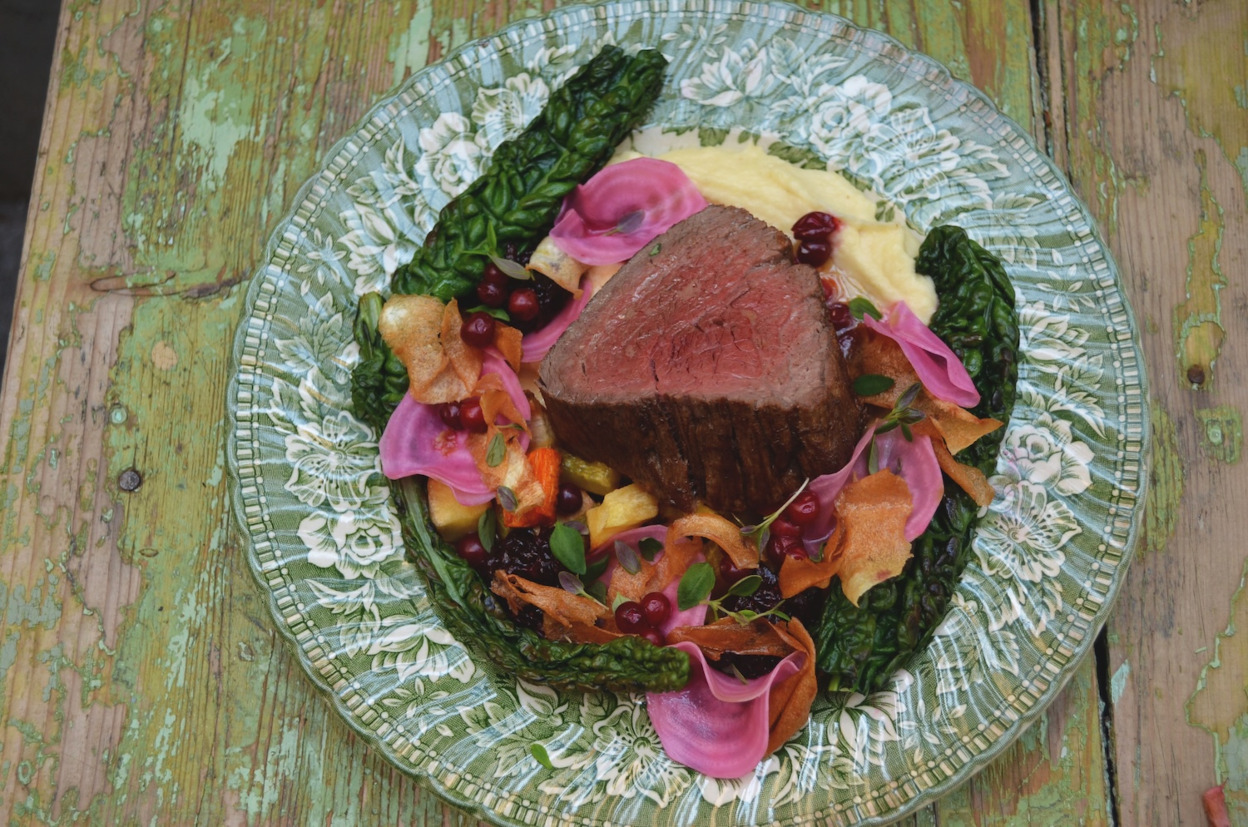 Svensk oxfilé med rotsaksvariation, svartkål, lingonkompott & brynt smörsky. En helgmiddag med höstiga smaker. Går finfint byta ut oxfilén till exempelvis hjortytterfilé eller ryggbiff. Ett av vinnarrecepten från tävlingen Sveriges bästa hemmakock. Av duktiga Jonathan Svedberg.