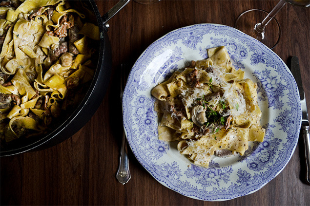 - Servera pastan med resten av den rivna parmesanen och några kvistar timjan på toppen.