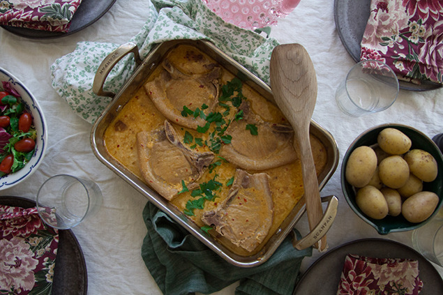 - Vispa ihop alla ingredienser till såsen i en kastrull. Låt koka upp och låt småputtra tills kotletterna är klara.