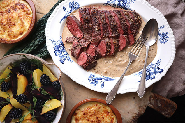 - När du tagit ut köttet så kan du höja ugnen till 225°C igen, stoppa in potatisgratängen och betorna på nytt så de får lite värme.