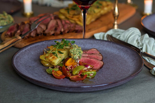 - Låt köttet vila minst 5 minuter innan du skivar portionsbitarna. När du skär köttet är det viktigt att du tänker på att skära mot fibrerna.