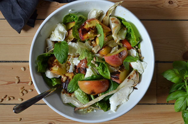 Sallad med grillad persika och honungsvinägrett
