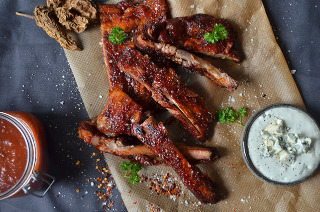 Tunna revbensspjäll med BBQ-sås och blue cheese