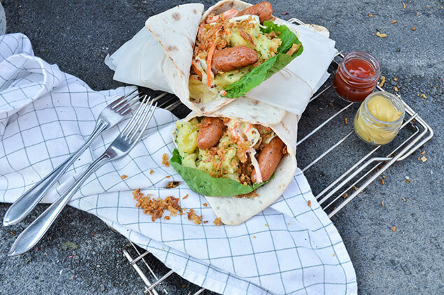 - Bygg ihop din rulle med ett tunnbröd, sallad, mos, korvar och kålsallad och njut!