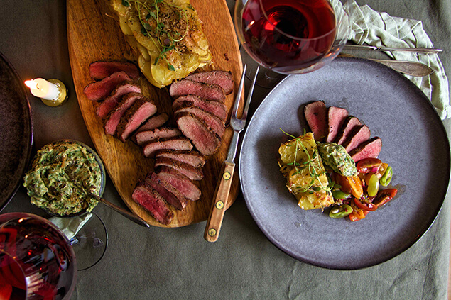 Saftig och smakrik ytterfilé av ren. Krossa enbär och krydda filén och stek sedan hastigt i en het panna med smör. Servera med en djup rödvinssås.