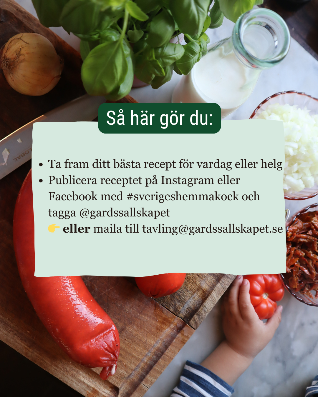 Lägg upp ditt bidrag på Instagram eller Facebook märkt med #sverigehemmakock och tagga @gardssallskapet